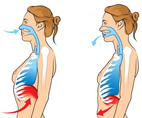 La respiration profonde est également appelée respiration abdominale ou abdominale. Il s’agit d’inhaler lentement et profondément par le nez, ce qui fait que les poumons se remplissent d’air à mesure que le ventre se dilate.