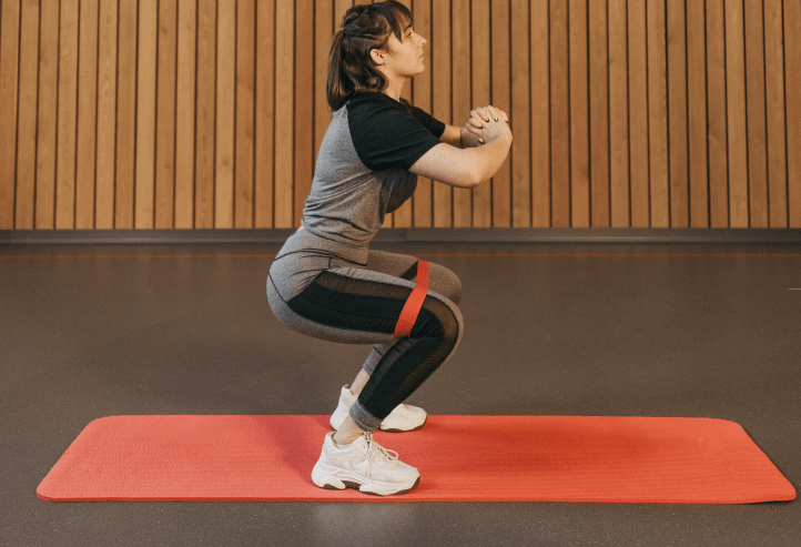 S’accroupir avec des bandes de résistance est un moyen abordable et pratique de développer ses muscles et sa force.